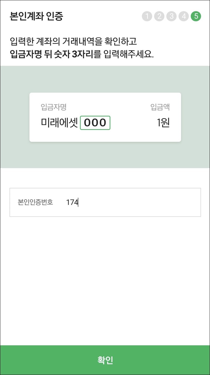 4. 1원 입금 인증 위한 은행/증권사의 본인계좌번호