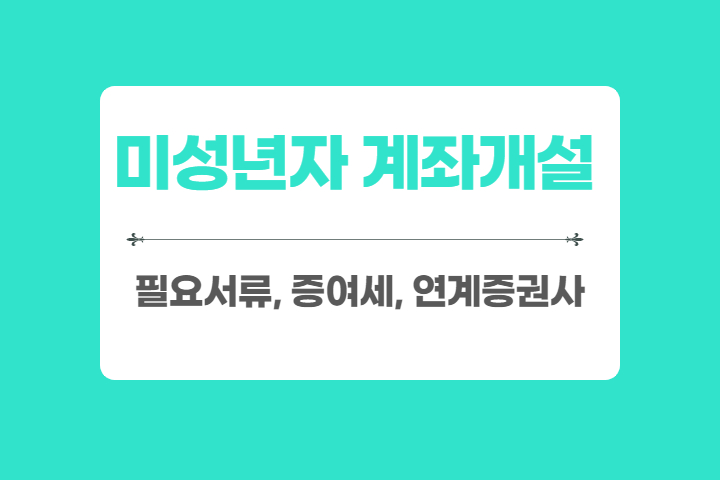 미성년자 주식계좌를 만들 때 필요한 서류가 무엇이고 주식으로 모은 자금에 대한 세금이 무엇이 있는지 그리고 은행에서 주식계좌개설을 할 수 없는 증권사도 알아보겠습니다.