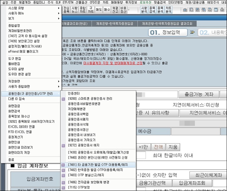 한투 HTS 시스템에서 타인증 등록